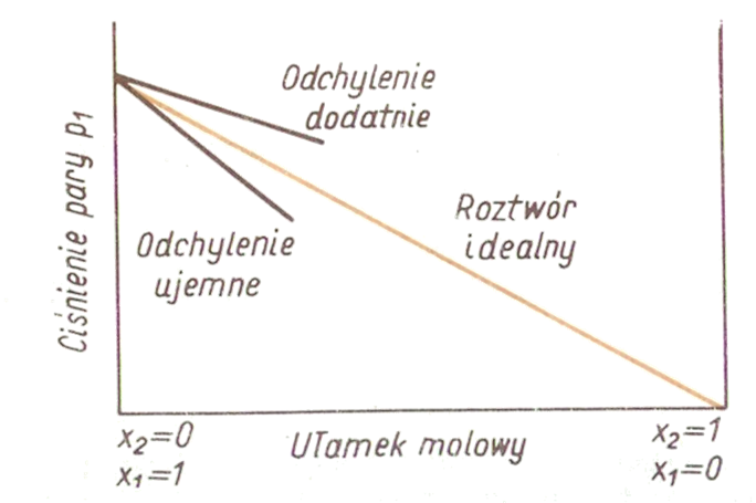 Przy większych stężeniach substancji rozpuszczonej obserwowane są odchylenia dodatnie lub ujemne od zachowania doskonałego.