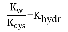 W związku z tym licznik jest stałą dysocjacji wody Kw, a mianownik stałą dysocjacji kwasu Kdys: