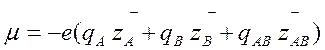 Moment dipolowy stanowi sumę części elektronowej, pochodzącej od elektronów walencyjnych i elektrycznego momentu dipolowego pozostałych jonów dodatnich , z których każdy utracił jeden elektron oddając go wiązaniu. Przyjmując, że te ostatnie przyczynki pochodzą od ładunków punktowych wypadkowy moment dipolowy można powiązać ze współrzędnymi z i członami elektronowymi qi równaniem: