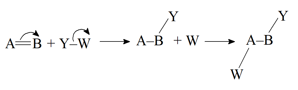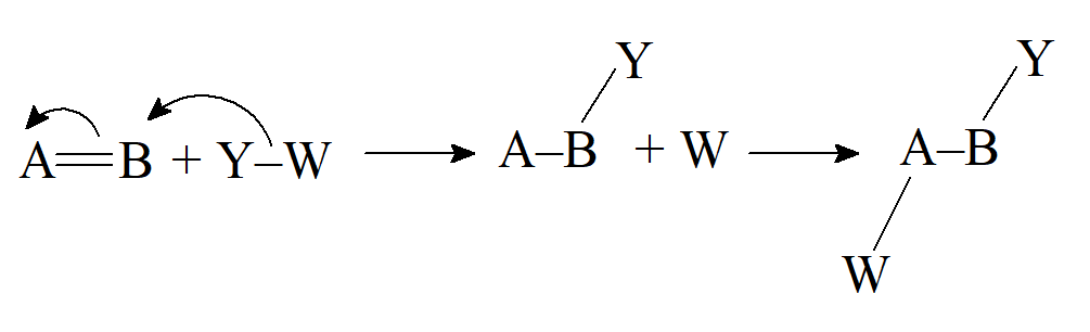 - Addycja do wiązań wielokrotnych. Reakcje te mogą zachodzić według trzech mechanizmów.