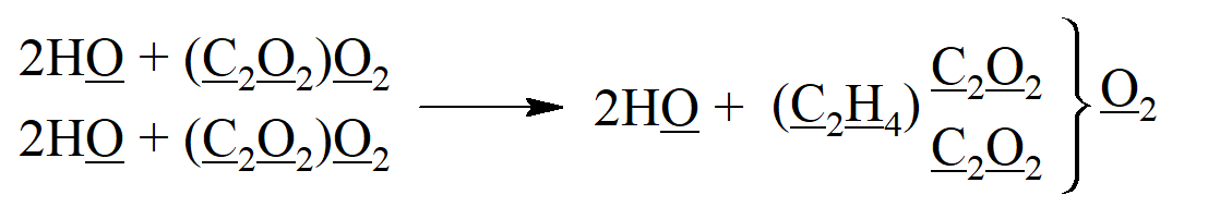 W poniższym przykładzie (kwas bursztynowy) dwa atomy tlenu są zastąpione pojedynczą grupą C4H4 (tj. C2H4, jeśli C = 12), a 2OH znika z atomami tlenu poza rodnikami C2O2. Kwas cytrynowy pochodzi z trzech cząsteczek kwasu węglowego: